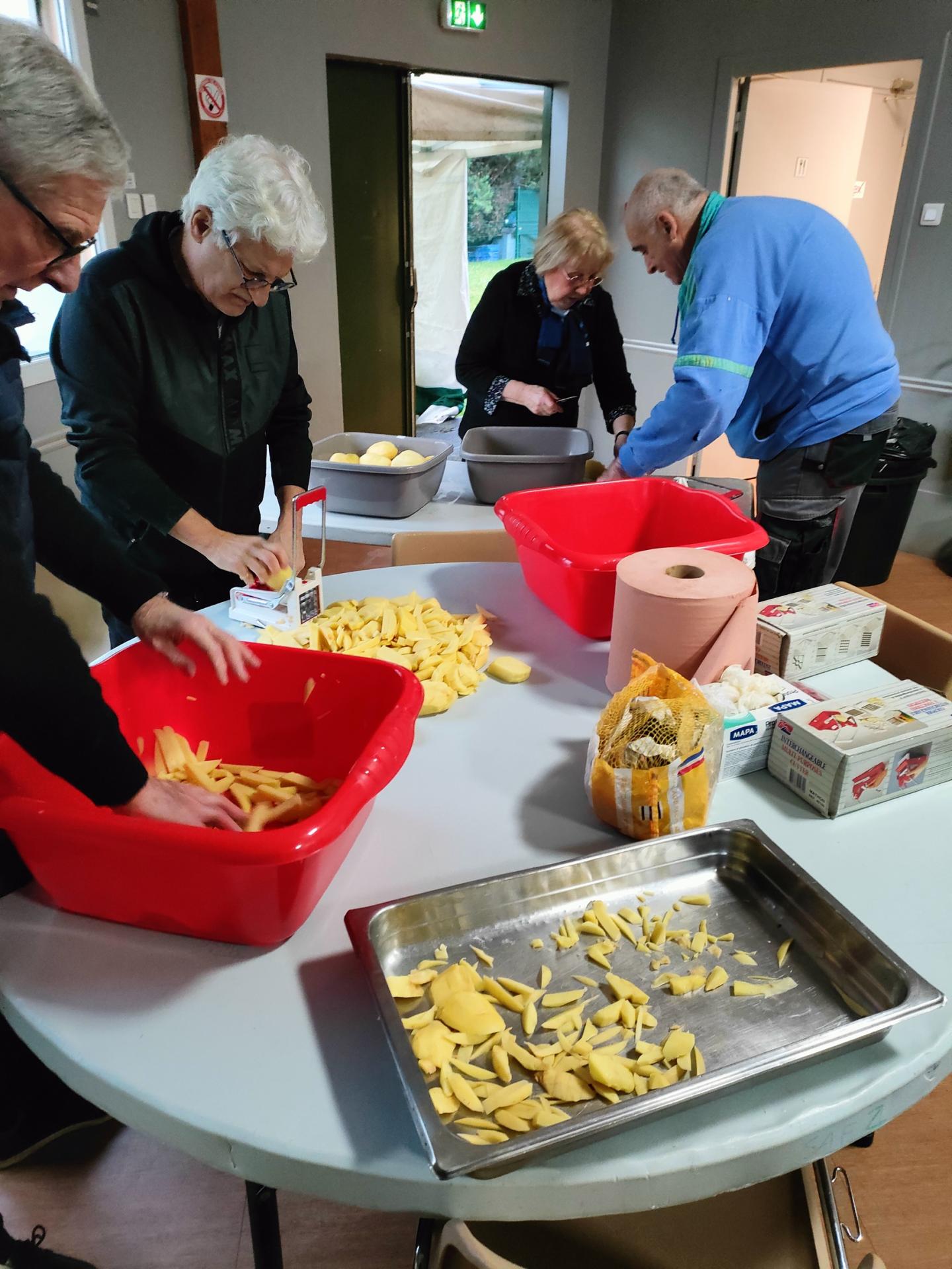 Le salon des vins 2024 s'est déroulé comme chaque année dans une bonne ambiance. Dès le samedi matin les petites mains étaient aux épluchures pour les frites du déjeuner , pendant ce temps là Gérard activait la friteuse et Guy Paris s'occupait des saucisses. Le samedi soir nous avons diner avec les exposants chez Michel BELTOISE. Le dimanche matin les petites mains étaient à nouveau actives avec leur économe. Cette fois ci Gérard nous a fait une excellente joue de porc pour le déjeuner. Nous avons eu droit à des serveuses hors pair pour le repas du midi. RVO remercie toutes les personnes qui ont permis la réussite de ces 2 jours.